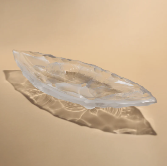 À travers ses vases et coupes, Lalique transpose l’élégance brute du silex en créations raffinées. Le cristal satiné repoli, travaillé sous diverses finitions, joue avec les contrastes, les reflets et la lumière.