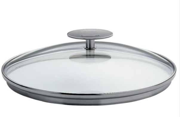 Couvercle en verre cerclé inox.