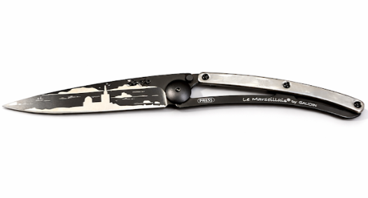 Le couteau Deejo "Le Marseillais" en exclusivité à la Boutique Gaudin ! Découvrez le couteau à l'image de notre magnifique ville de Marseille, avec la gravure de notre Notre-Dame de la Garde qui surplombe la mer vue sur les îles du frioul et le château d'îf. Le couteau "Le Marseillais" sera à coup sûr l'outil incontournable de nos tables.