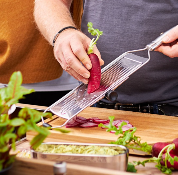 Obtenez des tranches parfaites, uniformes et sans effort, comme un chef professionnel ! Cet éminceur RÖSLE haut de gamme est l'outil indispensable pour sublimer la texture de vos légumes et fruits.