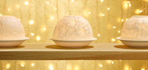 Photophore en biscuit de porcelaine avec décor gravé au motif de La mer