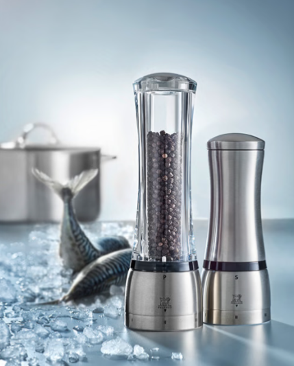 Le moulin à poivre Peugeot de la Daman est un exemple d’esthétisme et de modernité. Son design aux lignes épurées joue sur les effets de matière en associant à la transparence de l’acryl, l’éclat unique de l’inox. Ce moulin à poivre intègre une innovation ingénieuse: la suppression de l’axe central vertical pour un remplissage ultra-facile, accessible par le bouchon aimanté situé au-dessus du moulin. Son système de réglage de mouture sur-mesure u’Select permet de varier les saveurs et les plaisirs en choisissant une taille de poivre parmi les 6 sélections possibles. Comme tous les moulins Peugeot, son mécanisme en acier est garanti sans limitation de durée.