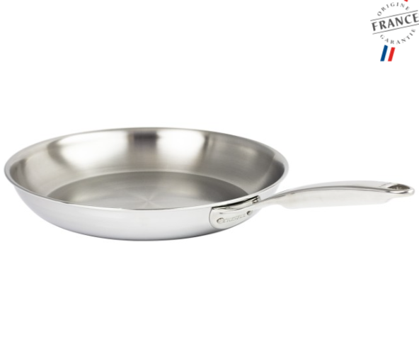 Poêle en inox, finition brillante, à poignée fixe rivetée. Nouveauté de la collection Castel’Pro.