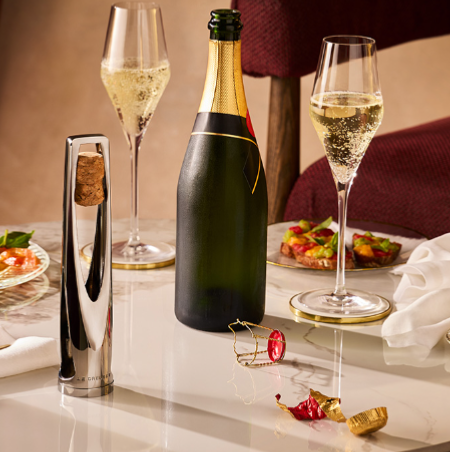 Ouvrez le vin pétillant en toute sécurité - retenez le bouchon lorsqu’il émerge pour éviter les déversements et préserver le moment. Disponible en polycarbonate ou en zamak - placez-le sur la bouteille, appuyez fermement, maintenez fermement