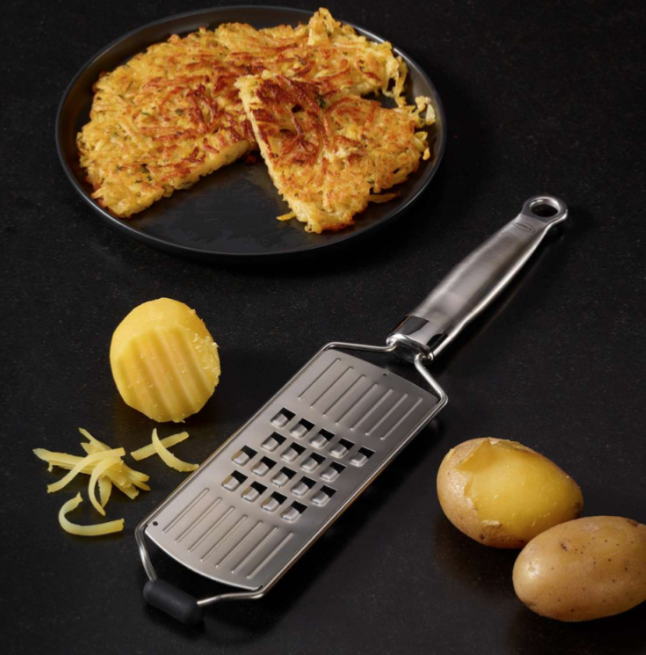 Transformez le râpage en plaisir avec la râpe Rösle, l'alliance parfaite entre l'élégance de l'inox et une performance de coupe inégalée.