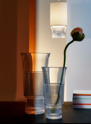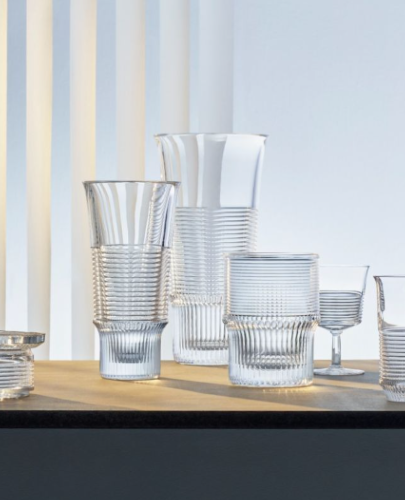 Fruit de la rencontre entre une manufacture séculaire et un design radical, Cadence se distingue par sa simplicité formelle et contemporaine. Le dessin de Pierre Charpin rythme la matière Le motif régulier des lignes inscrites dans le cristal est savamment adapté aux contraintes du matériau, grâce au savoir-faire des verriers. La régularité des sillons gravés dans la matière en réhausse l’éclat et la clarté. La partition qui se joue ici laisse deviner le travail tenace que requiert toute maîtrise d’un geste, qu’il s’agisse de dessin à main levée ou de ceux qui composent l’art verrier.